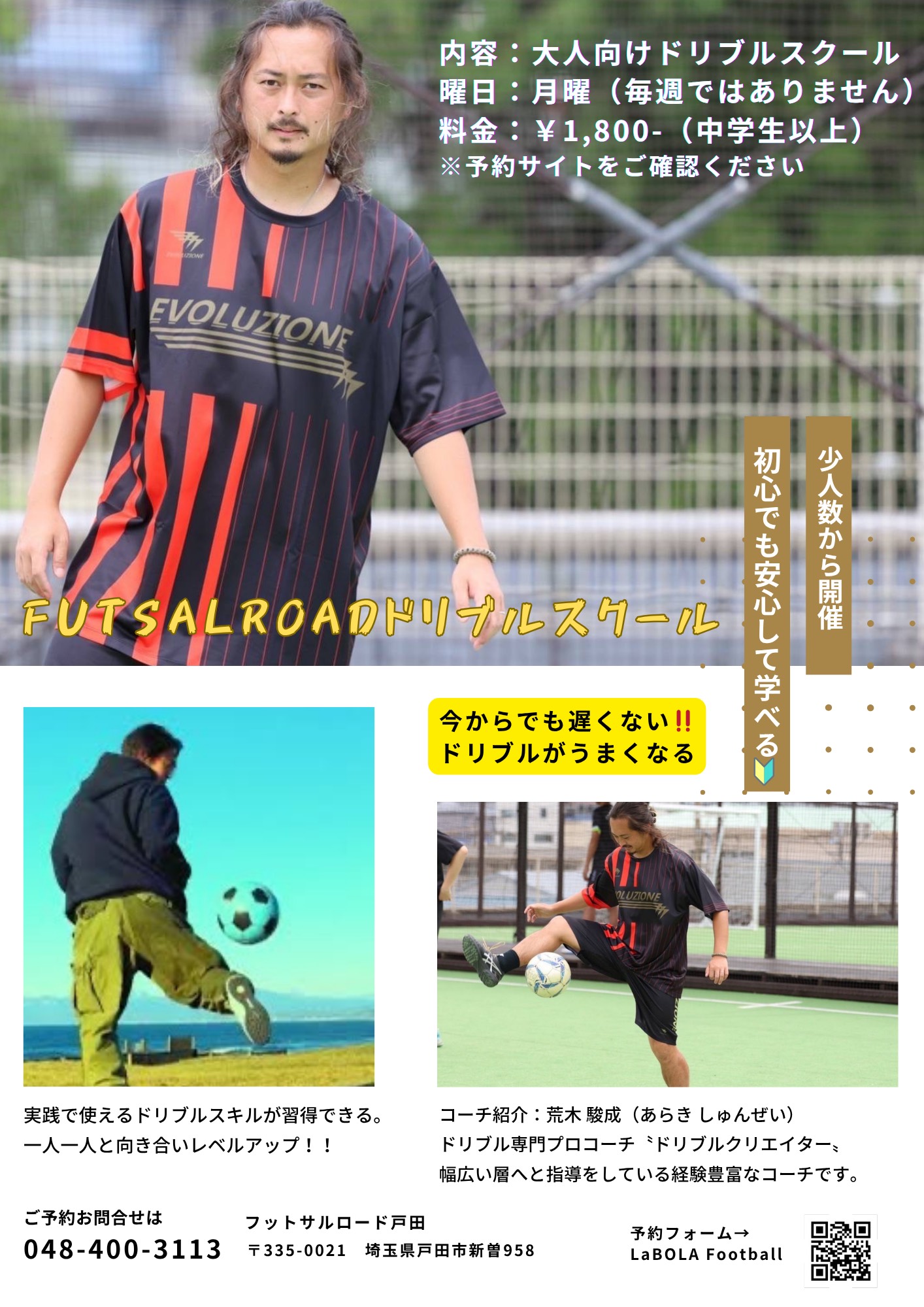 フットサルロード主催の大人向けドリブルスクールを開催いたします。