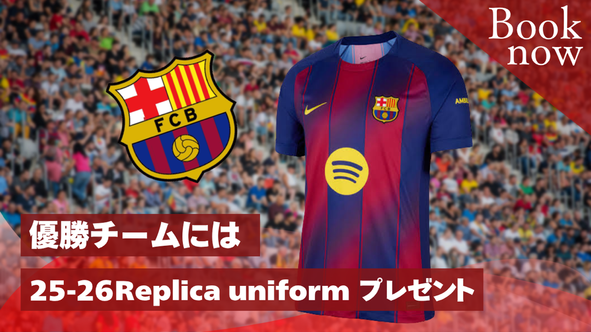 レプリカ通常価格(優勝でバルセロナレプリカ):32,500 円(対象:メンバー/ビジター) レプリカタイムセール価格(優勝でバルセロナレプリカ):27,500 円(対象:メンバー/ビジター) 通常価格(優勝でオリジナルユニフォーム):27,500 円(対象:メンバー/ビジター) ※参加費は原則として、銀行振込による事前のお支払いをお願いしております。