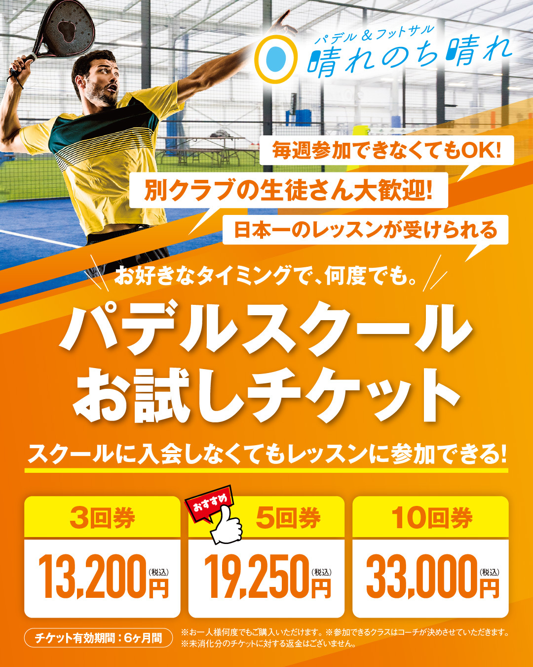 スクール会員:5,500 円(対象:メンバー/ビジター) 一般:6,600 円(対象:メンバー/ビジター) 天候に左右されないインドアコートを使用する為、中止の心配無し♫