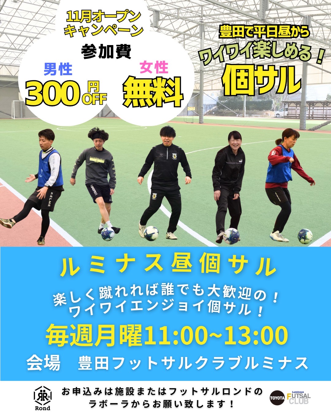 前の週の豊明木曜エンジョイ個サル、豊明金曜ゆるサル、どちらか参加の方!300円割引!