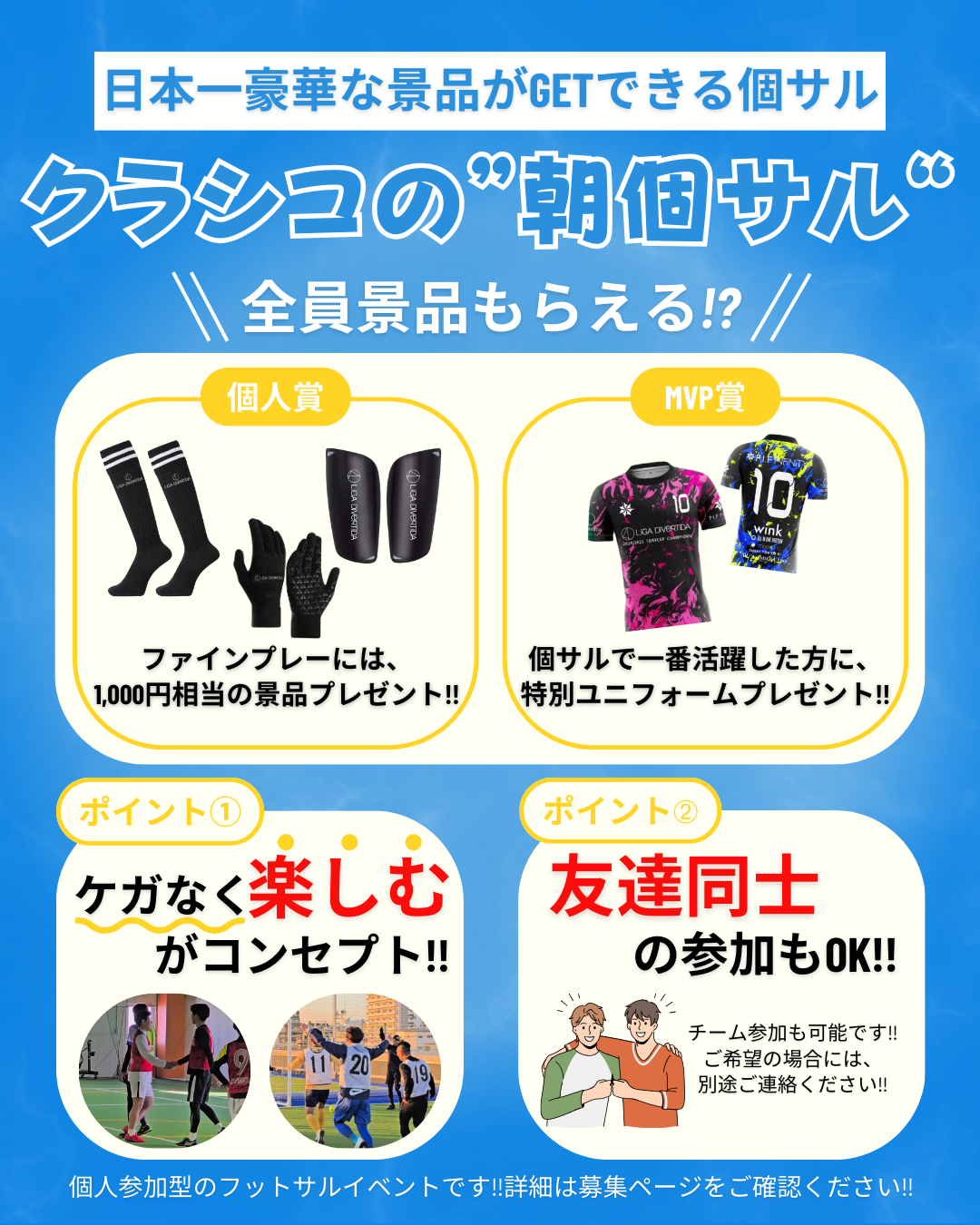 | 対象クラス | エンジョイ(備考:楽しく蹴れる方限定!!※経験者推奨※) |