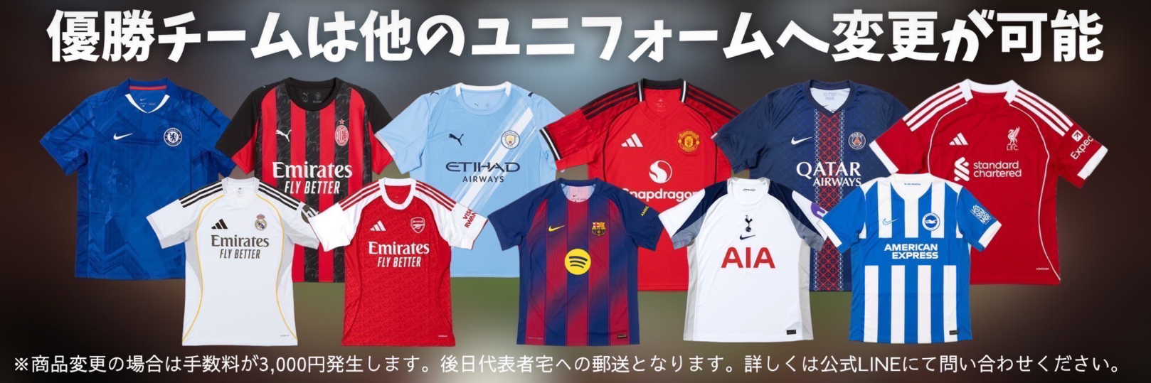 ・優勝された場合でメインに掲載されているユニフォーム以外をご希望の場合であっても、在庫状況によりご希望に添えない場合がございます。