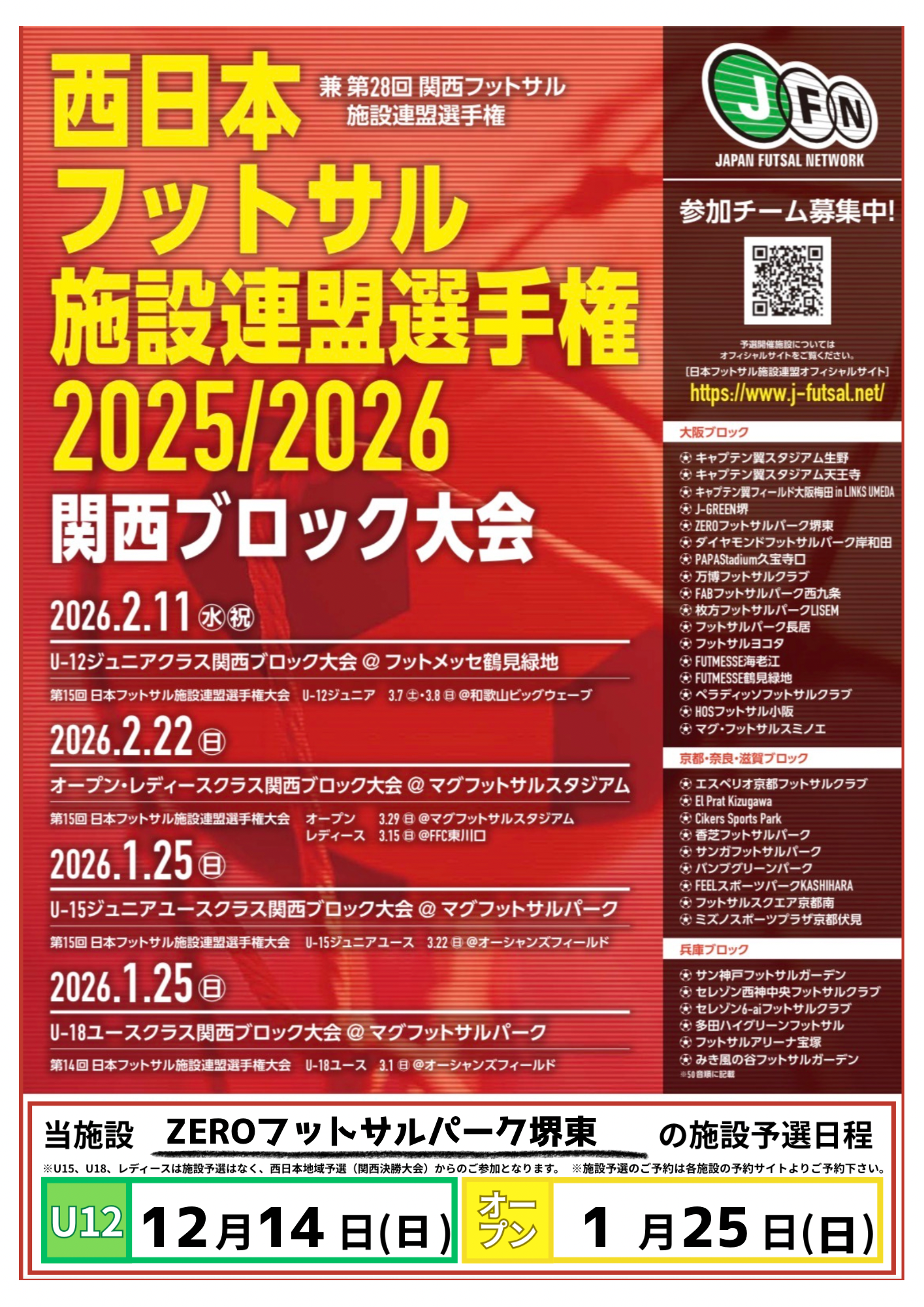 ※優勝チームは2026年2月11日(水祝)フットメッセ鶴見緑地にて開催される関西大会への出場権を獲得✨