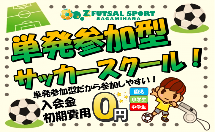 参加費(45分):1,300 円(対象:メンバー/ビジター) 回数券:0 円(対象:メンバー/ビジター) 単発参加型Zサッカースクールです♪