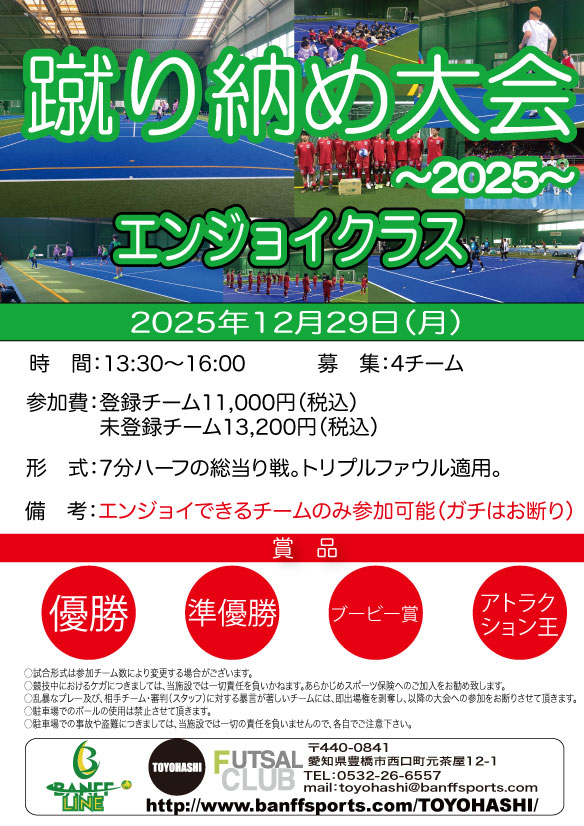 豊橋フットサルクラブ(インドアCコート) 愛知県豊橋市西口町元茶屋12-1 (Googleマップから確認) |