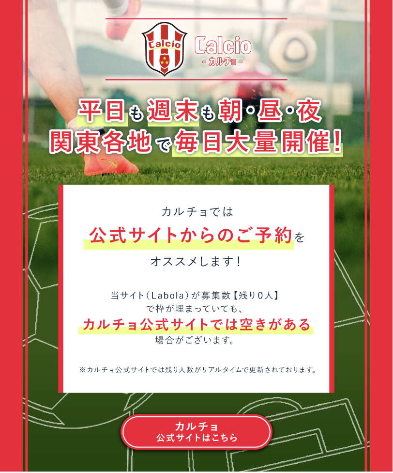 ※女性無料枠へのご予約はカルチョ公式HPからのみの受付となります。