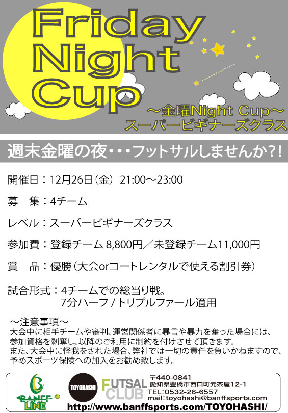 豊橋フットサルクラブ(インドアCコート) 愛知県豊橋市西口町元茶屋12-1 (Googleマップから確認) |
