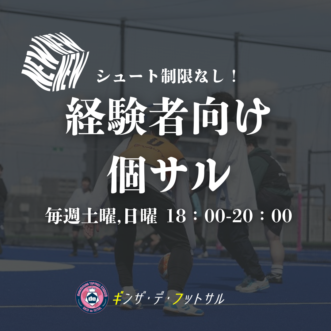 エンジョイの個サルでは物足りない方、ゲームスピードが早めがいい方、フットサル経験、サッカー経験が長いという方、しっかり運動量を確保したい方、そんな皆さんの為のプログラムとなっています。