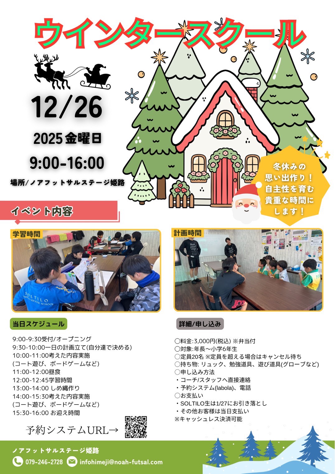 | キャンセル規約 | 開催2時間前:無料 ※開催2時間前∼プログラム開始まで:50% 無断キャンセル、プログラム開始後:100% ※は、2022年9月1日~適応 開催2時間前まではWEB上でのキャンセルが可能です。 それ以降のキャンセルは店舗にご連絡下さい。 電話:079-246-2728 LINE:nfs_himeji メール:infohimeji@noah-futsal.com |