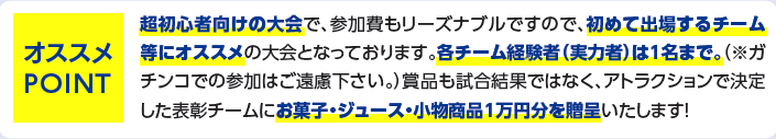 ・時間、試合形式は参加チーム数により変更する場合がございます。ご了承ください。