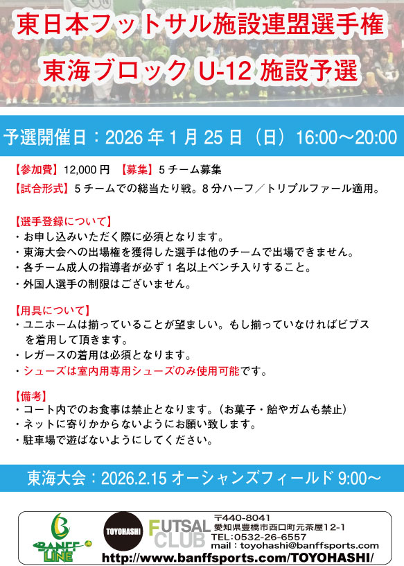 豊橋フットサルクラブ(インドアAコート) 愛知県豊橋市西口町元茶屋12-1 (Googleマップから確認) |