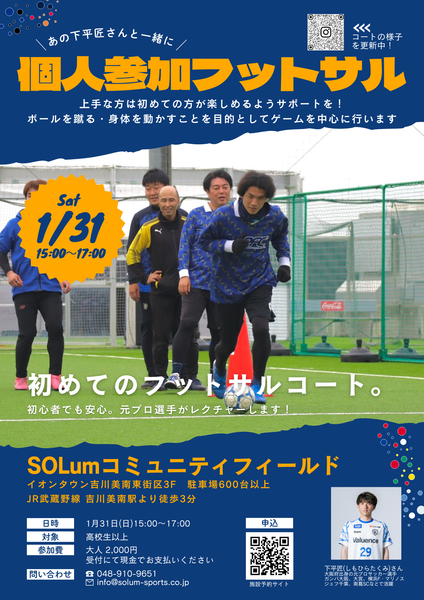 SOLumコミュニティフィールド(Aコート) 埼玉県吉川市美南3丁目23-1 イオンタウン吉川 東街区3F(Googleマップから確認) |