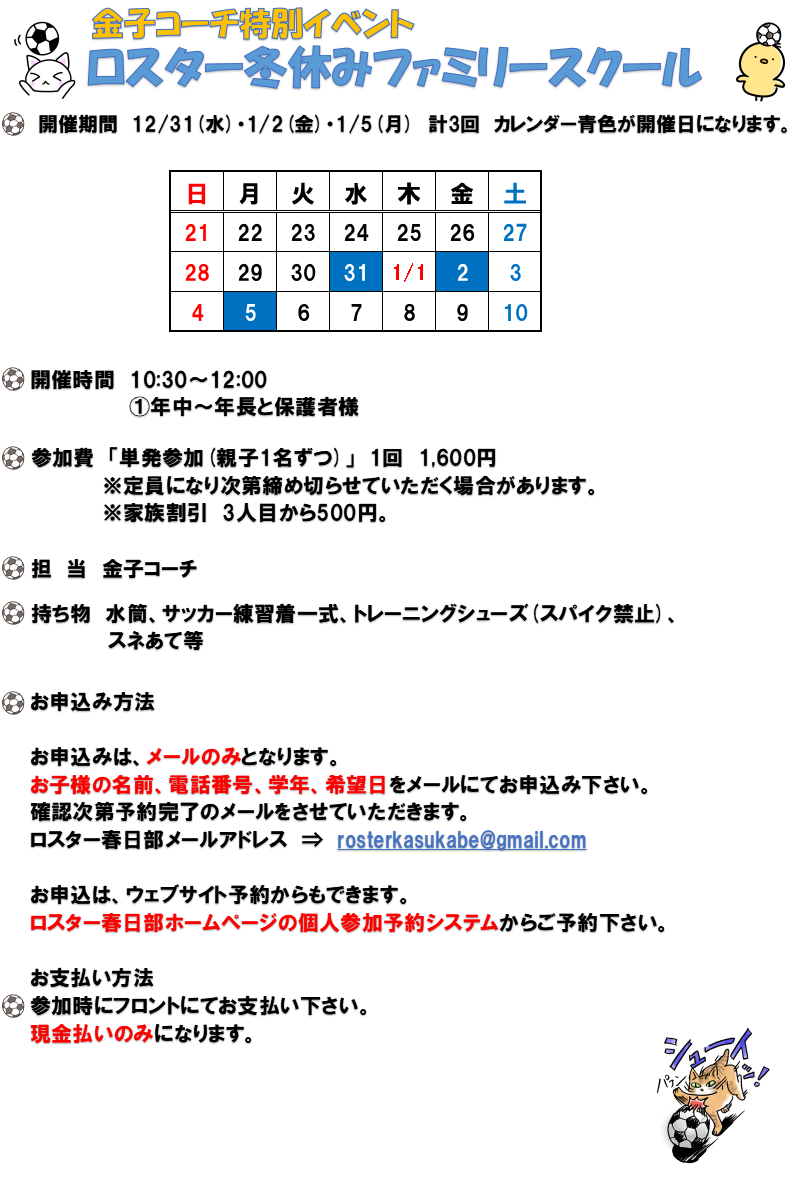 今年も冬休みスクールを行います!!(^^)!
