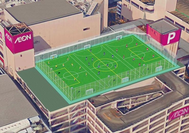 | 設備等 | ・ショートパイル人工芝(30m×15m)3面 ・ナイター設備完備 ・更衣室(男女)、シャワー完備 ・トイレ(イオン2階利用ください) ・レンタルウエア、レンタルシューズ、500円(税込)にて貸出 |