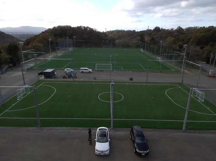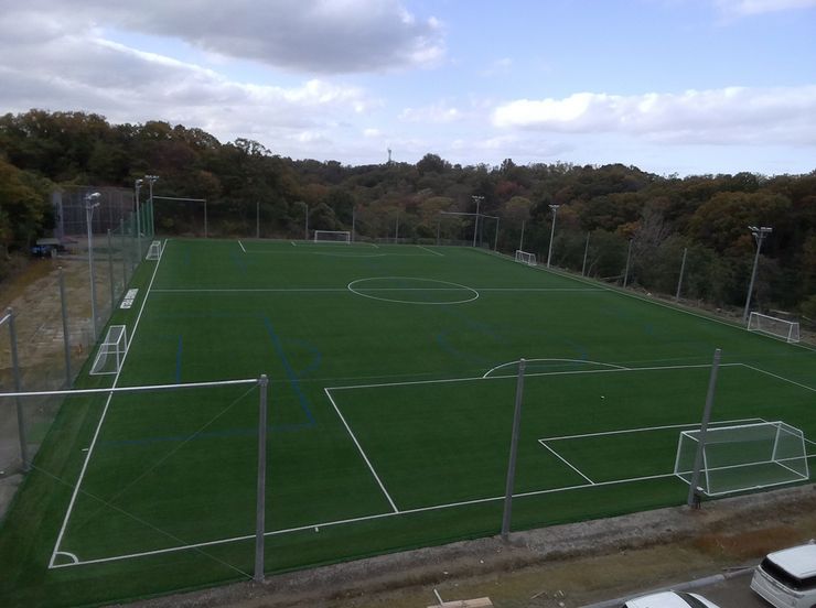 奈良市初 公式戦もできるサッカーグラウンド【大人用1面 少年用2面】 最新最高級人工芝【Jクラブの練習場で使用している住友ゴム工業株式会社ハイブリットターフEX-55RF 温度抑制 茶色チップ】