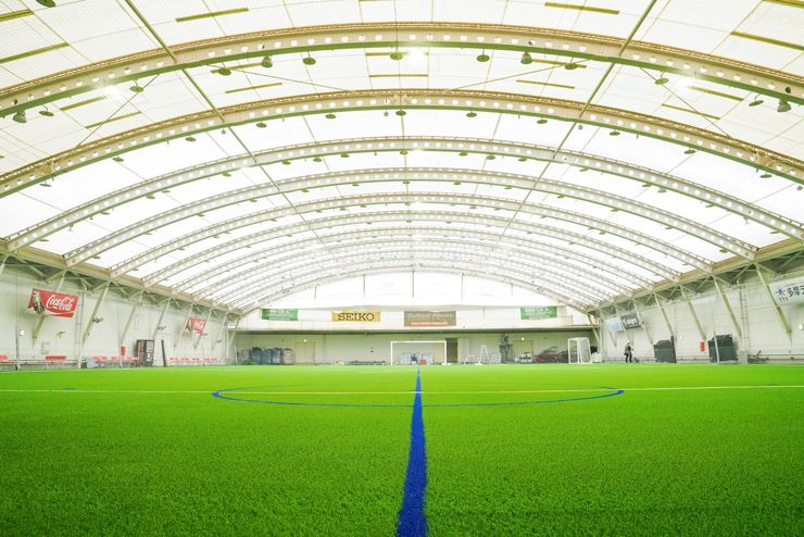 ・フットサルコート(17m×32m) その他、運動会や撮影・各種イベントに対応します。 フットサルコート3面連結するとソサイチコート(30m×50m) としてもご利用いただけます。