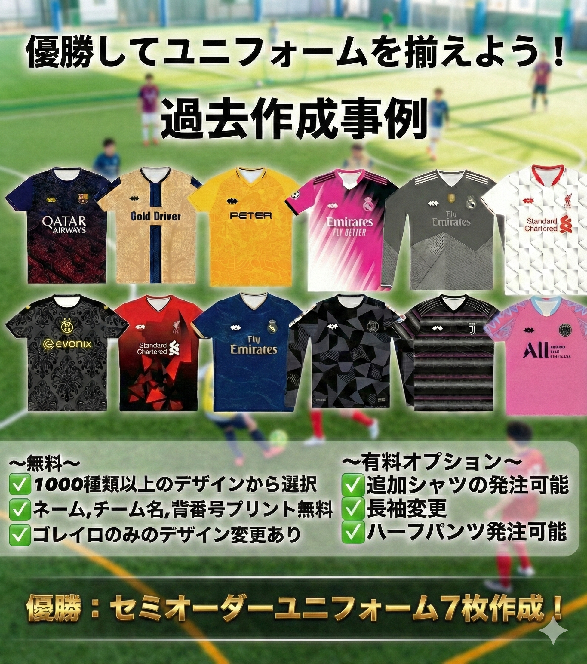 優勝景品セミオーダーユニフォーム7枚!
