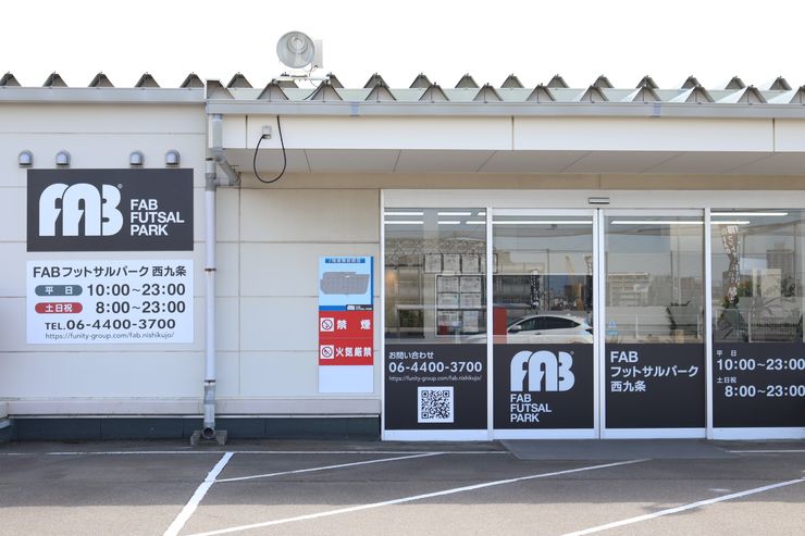 説明 | FABフットサルパーク西九条(ファブフットサルパークニシクジョウ) JR大阪環状線西九条駅、阪神電車西九条駅より徒歩7分にあるフットサルコート。 屋外フットサルコート2面(34M×16M)のショートパイル人工芝になります。 フットサルだけでなく様々なスポーツや、ドローンなどにも利用できます。 無料駐車場完備。収容台数 約300台 ※受付に駐車券をお持ちください。 男女別更衣室、クラブハウス、ミーティングルームあり。 |