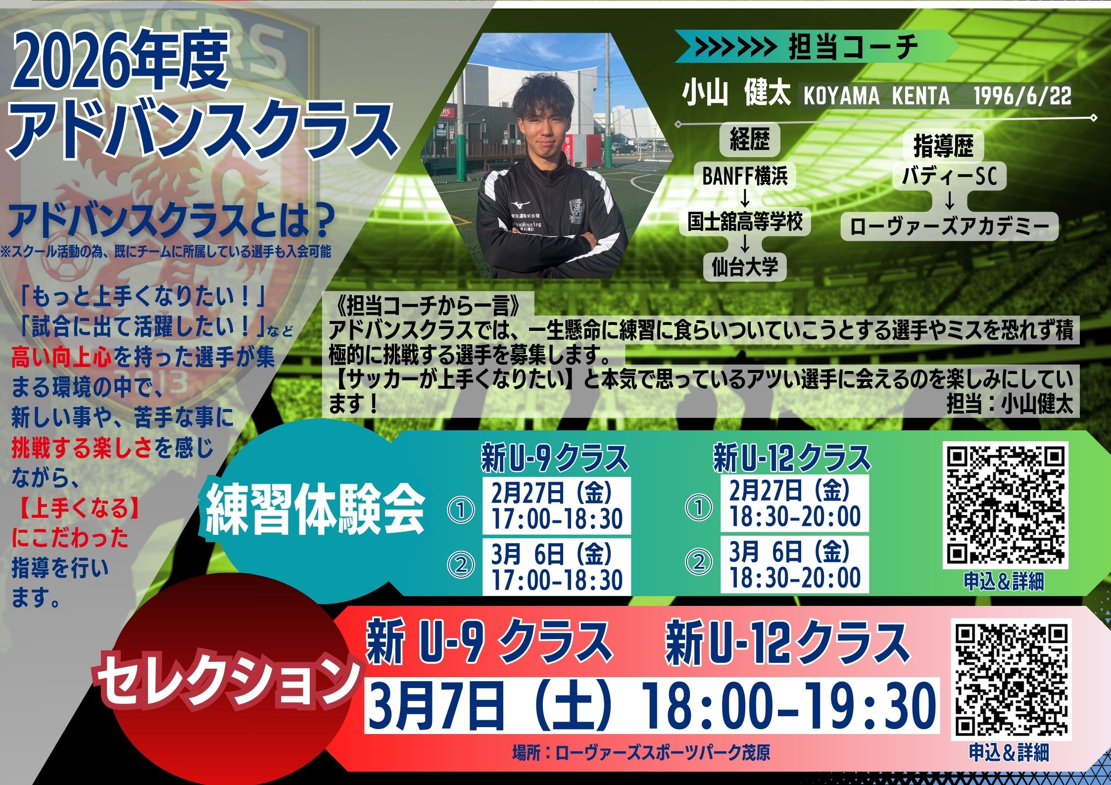 アドバンスクラスでは、一生懸命に練習に食らいついていこうとする選手やミスを恐れず積極的に挑戦する選手を募集します。