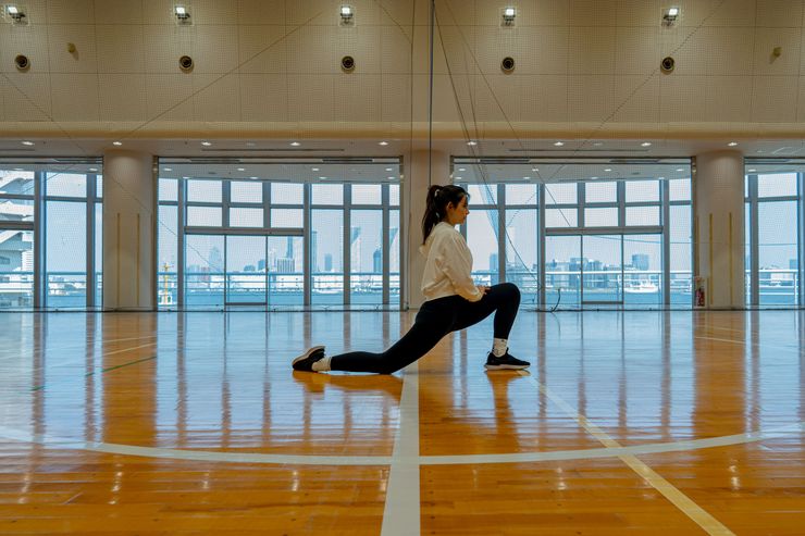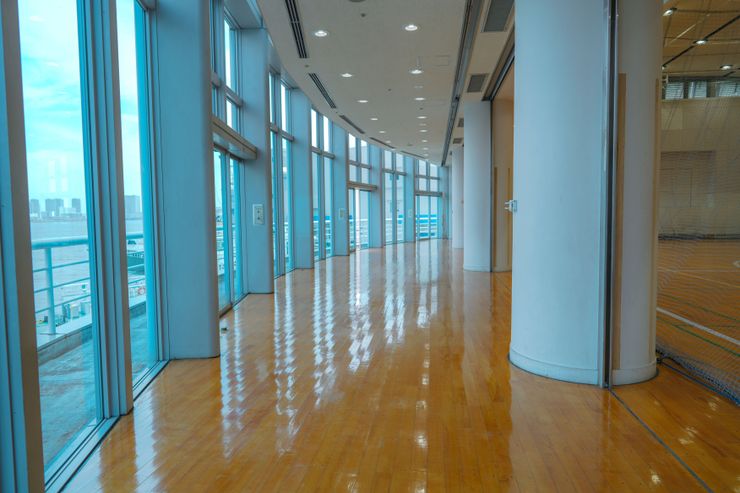 SPORTS LABO SHIBAURAの体育館コートは多目的に利用が可能です。 フットサル・バドミントン・バレーボール・ダンス・ヨガ・各種イベント・撮影など… ※バスケットボールは、ゴールがないためご利用できません。 東京ベイエリアが一望できる開放的な空間で仲間と共にスポーツをお楽しみください!