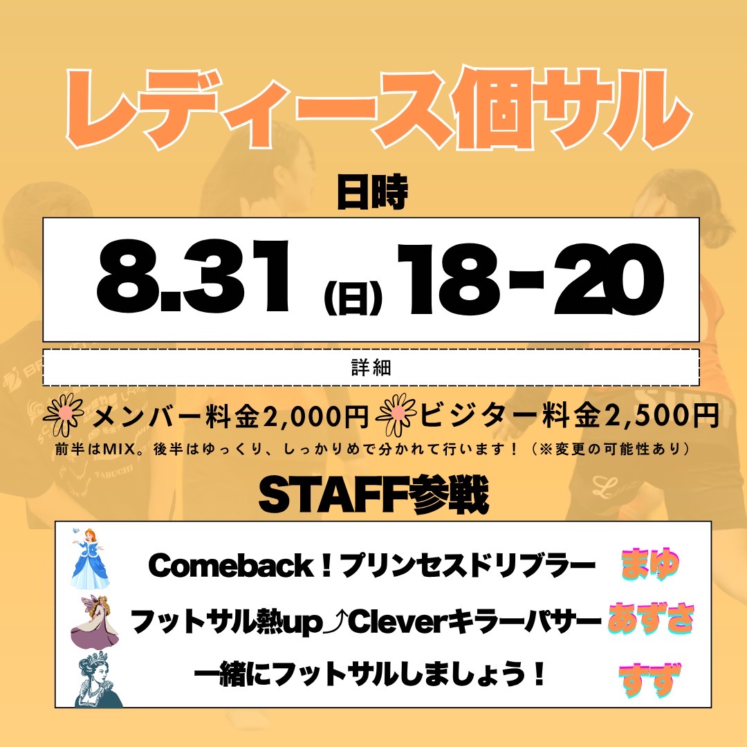 女性限定!残り8枠!第4回レディース個サル(カテゴリー3)