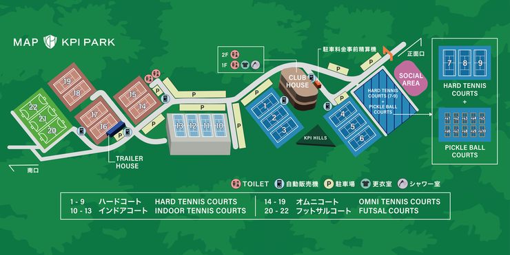 | 説明 | KPIPARK 〒244-0801 神奈川県横浜市戸塚区品濃町1588−1 テニスコート(ハード9面) 予約受付期間 60日前から直前まで 1番~6番 は17時まで 4.5.6.7.8.9番は23時まで利用できます。 ※予約受付締切 3時間前 テニスコート(オムニ6面) 予約受付期間 60日前から直前まで ピックルボールコート10面 予約受付期間 60日前から3時間前まで フットサルコート/人工芝3面 予約受付期間 60日前から直前まで レンタルスペース クラブラウンジ 【法人・団体予約】 法人様及び団体様のご予約については こちらからお問い合わせ下さい。 ※60日以上前の申し込みお受けいたします。 https://www.kpi.asia/group-contact-form/ |