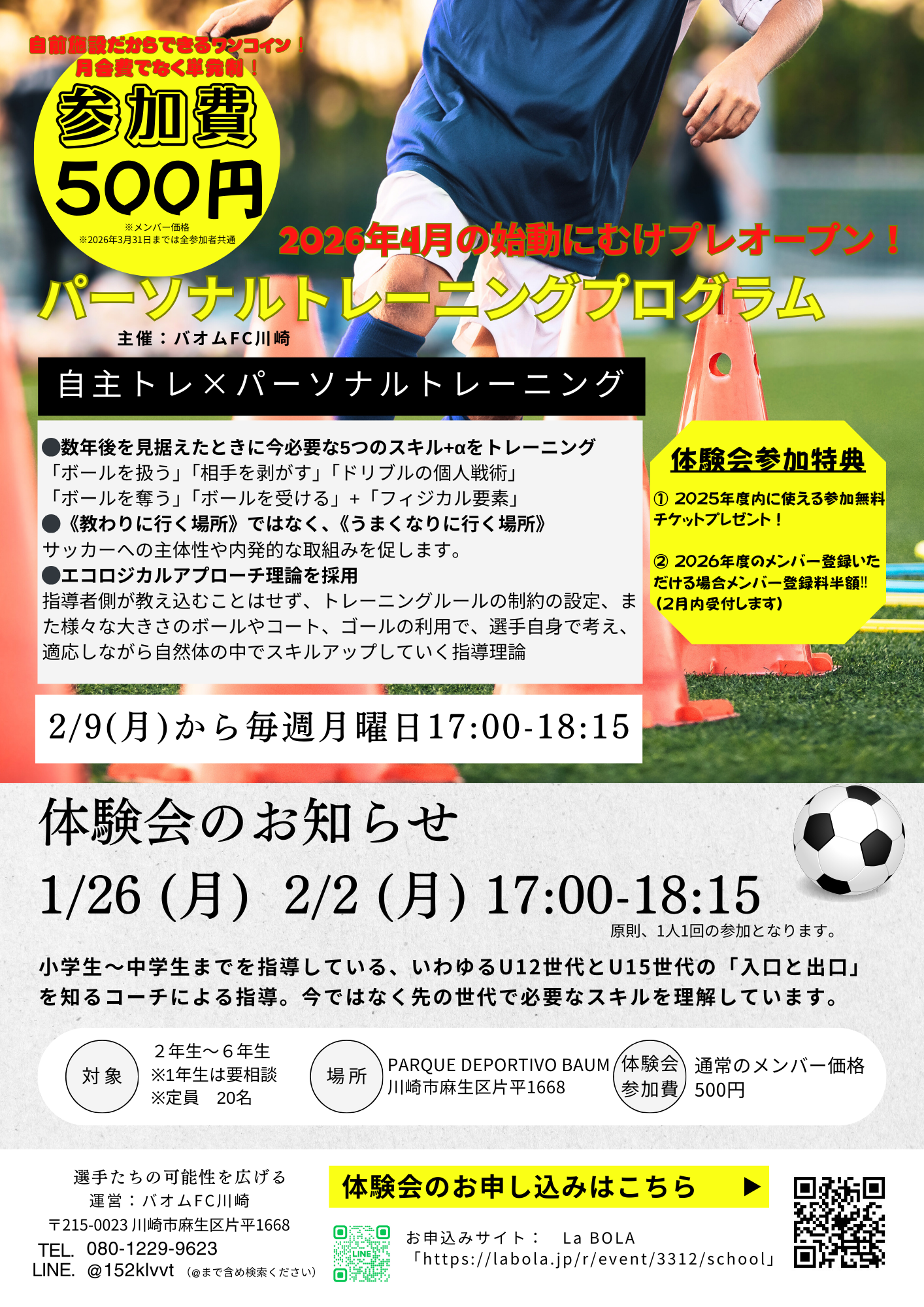 ・バオムFC 川崎とPAQUE DEPORTIVO BAUM(施設)のインスタグラムにてご案内します。