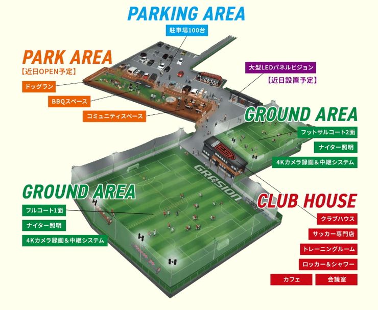 | 説明 | 2024.7 GRAND OPEN!! 「最先端の設備」と「憩いの場」を備えた 東葛地区初、民営「フルピッチサッカーグラウンド」誕生! 【施設総敷地面積:6200坪】 ・FIFA公認人工芝サッカーフルコート(105m×68m) ・FIFA公認人工芝フットサルコート2面(40m×23m×2面) ・樹脂チップ採用で安全で夏も快適 ・ナイター照明完備 ・サッカー専門店 エベスポーツfield店(クラブハウス内) ・研修/会議室(クラブハウス内 35坪) ・スポーツジム ・駐車場(120台/土日祝のみ有料) ・BBQ/公園/カフェスペース併設(予定) 【4K定点カメラ/中継システム】 各グラウンドには画面解像度の高い4Kカメラを計4箇所配置し、選手の動きを鮮明にとらえることができます。 また、中継システムを導入することでアマチュアサッカーでもリアルタイムで各所に試合を届けることが可能です。 →予約制 ※当施設でドラマ、CMなどの撮影をご希望される方は、一度施設までご連絡下さい。 |