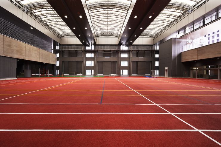 全面:1,520㎡ 天井高さ:10.3~15.2m トラック:70m×4レーン 直線:50m テニスコート:1面(10.97×23.77m) ドッジボール:2面(約8×13.8m) フットサル:1面(19.8×28.8m)※ゴールは折り畳み式簡易ゴール※フットサル専用ライン無し 付属設備:開閉式屋根※全天候型 【禁止種目】 野球、キックベース、その他地面や壁面を傷つける恐れのある種目