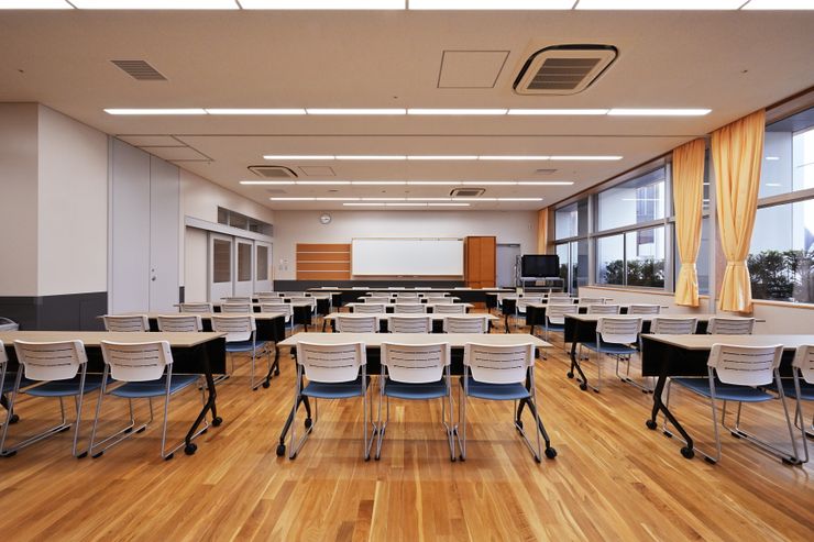 多目的室1:72㎡ 多目的室2:57㎡ 室内に可動間仕切りを設け、利用人数、用途に応じて一体利用・分割利用の使い分けが可能