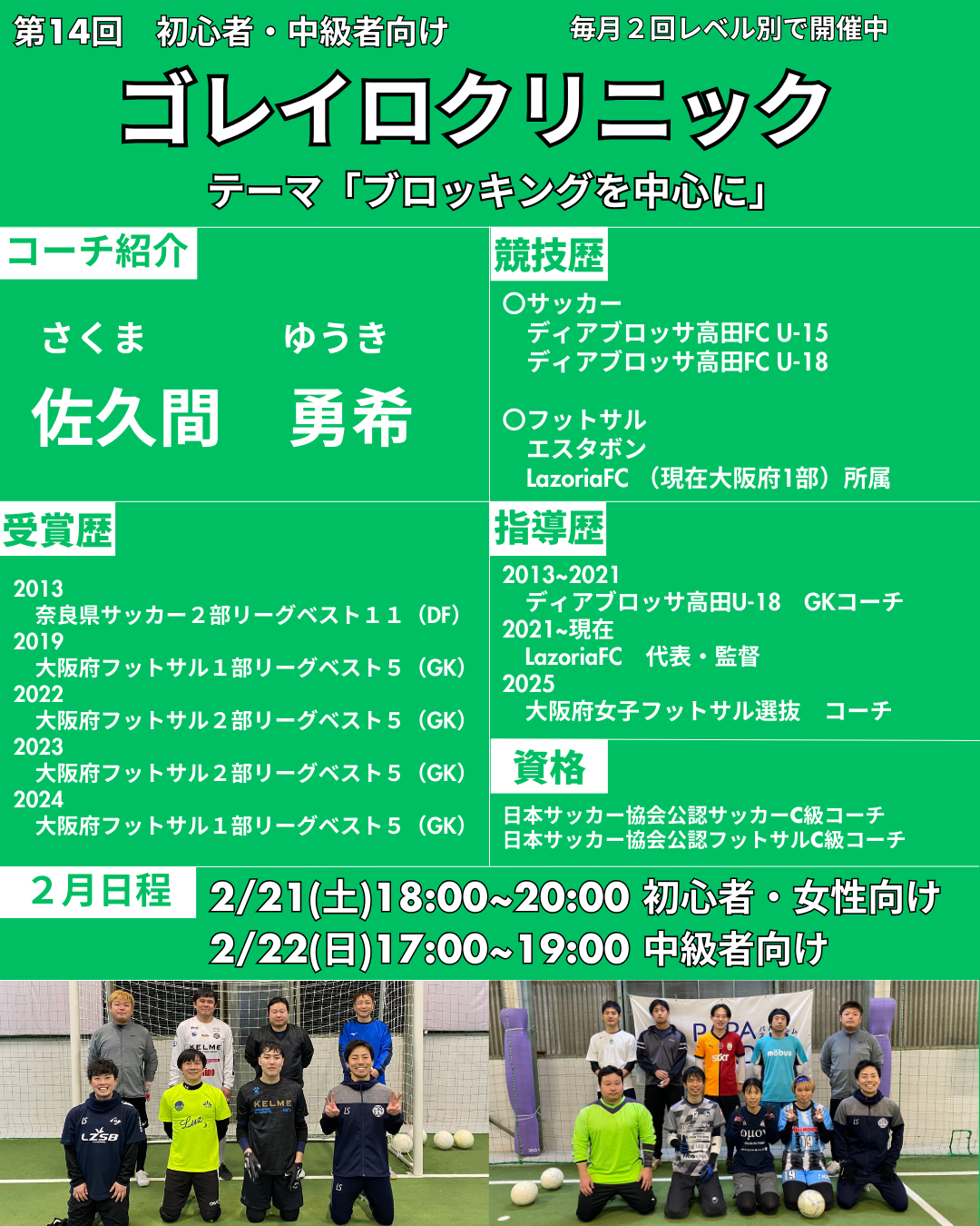 第14回ゴレイロクリニック 中級者向けレベル「ブロッキングを中心に」✋