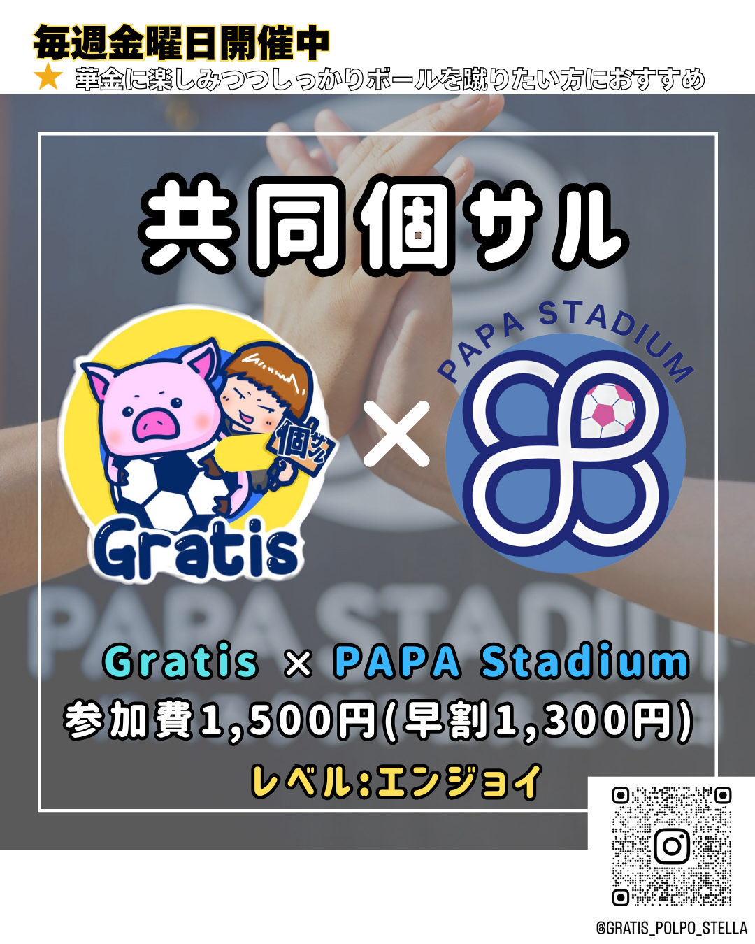 Gratis(グラティス)とパパスタジアムの共同個サルを開催します!