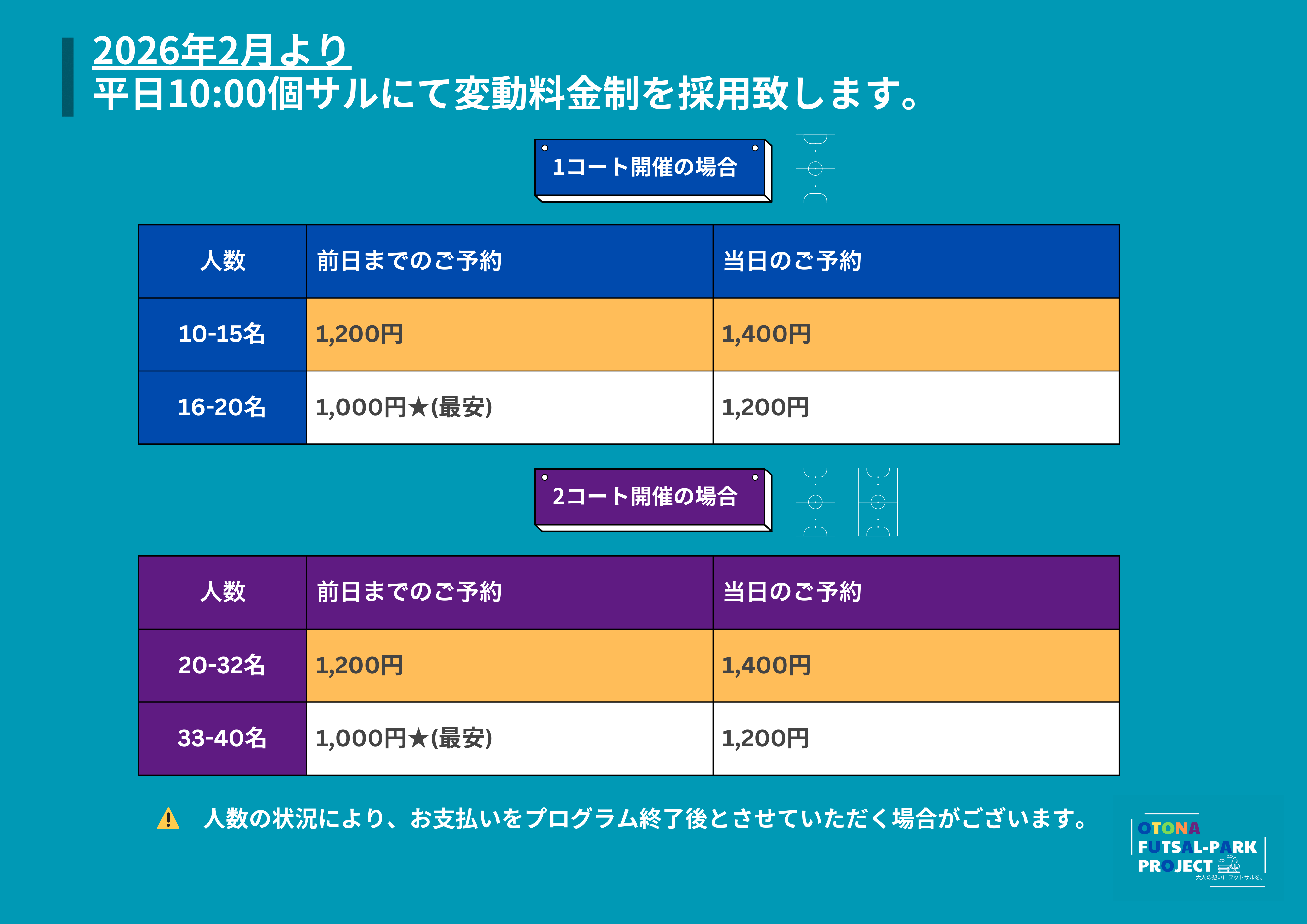 OTONA FUTSAL-PARK PROJECTのプログラムでは下記のルールを設けております。