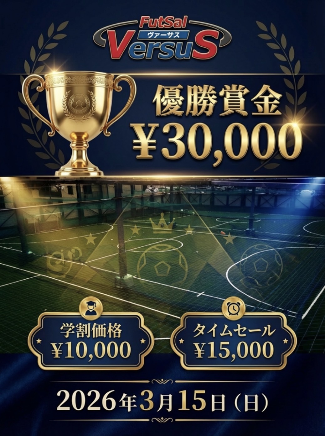 参加チームには、ヴァーサス新座フットサルクラブのコート利用券5000円分or個サル無料券5枚を配布致します!